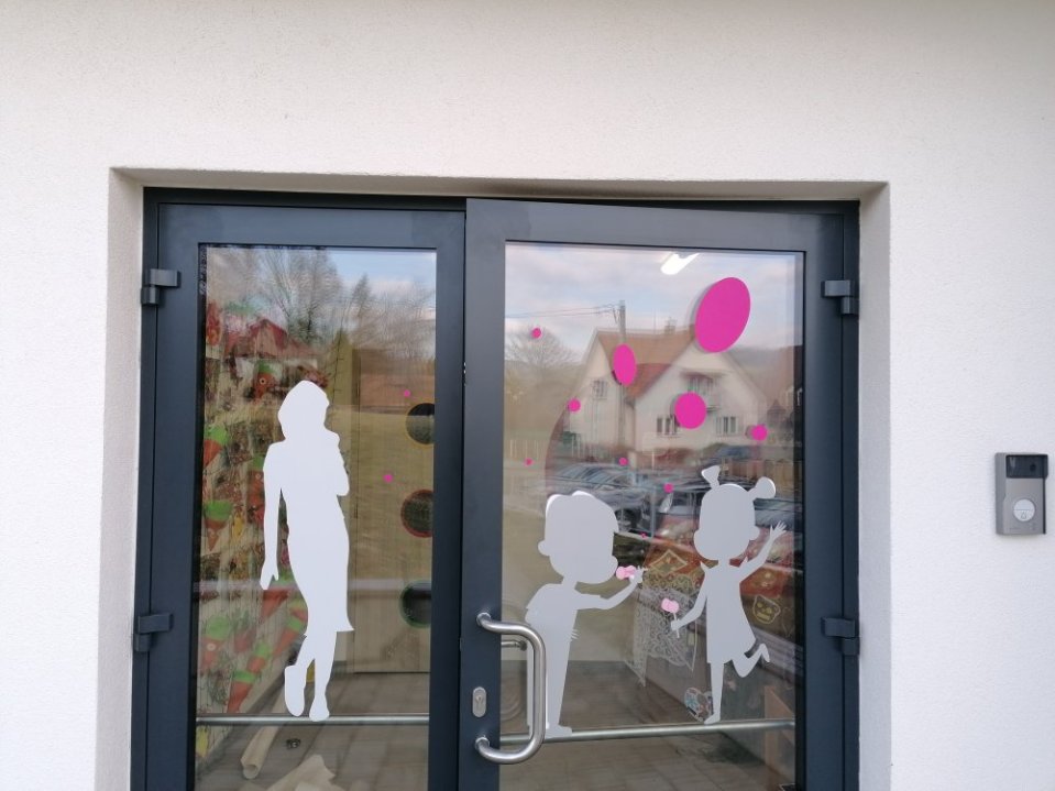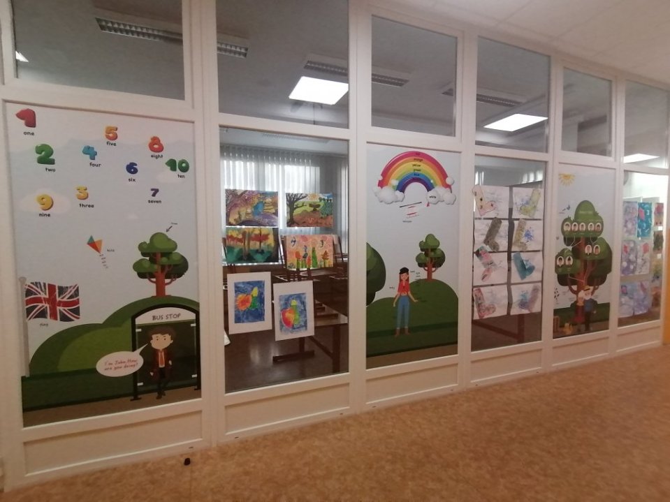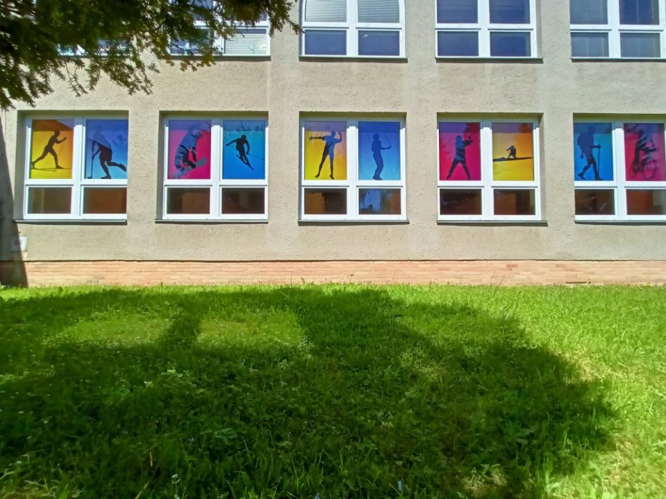 Jednostranné polepy jsou oblíbené a poměrně jednoduché a vypadají bezvadně. Jsou však místa, kde nevyhovují. Tak nás jednou napadlo, že by bylo krásné použit něco jako vitráž. Přiznáme se, že nás nápad a vidina polepů na sklo, přes které prochází sluneční svit nadchl. Pak už byl jen krůček k tomu, tento nápad zrealizovat. A tak jsme dostali hned několik zakázek různého charakteru. Mezi nejlepší řadíme znázornění jednotlivých kontinentů v interiéru školy a také polepy se siluetami sportovců. Dalším vtipným pojetím jsou kostičky jako z tetrisu, které plní zároveň bezpečnostní funkci.