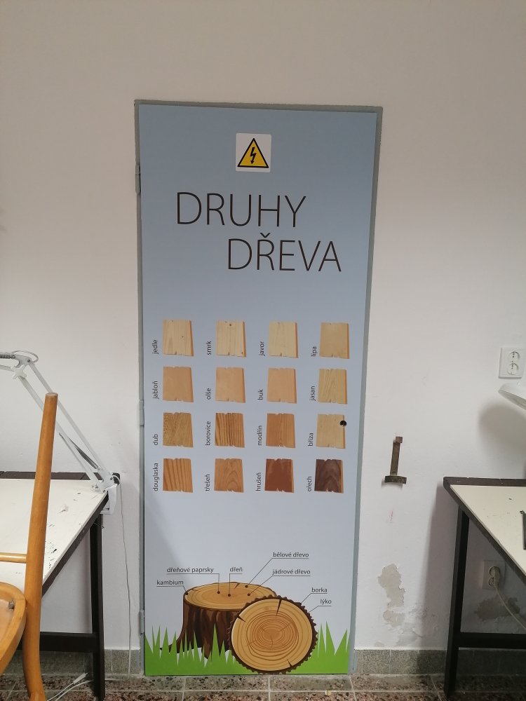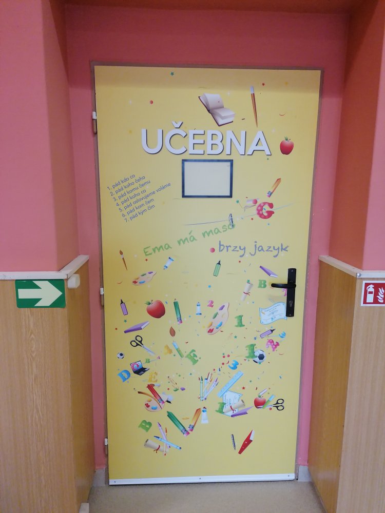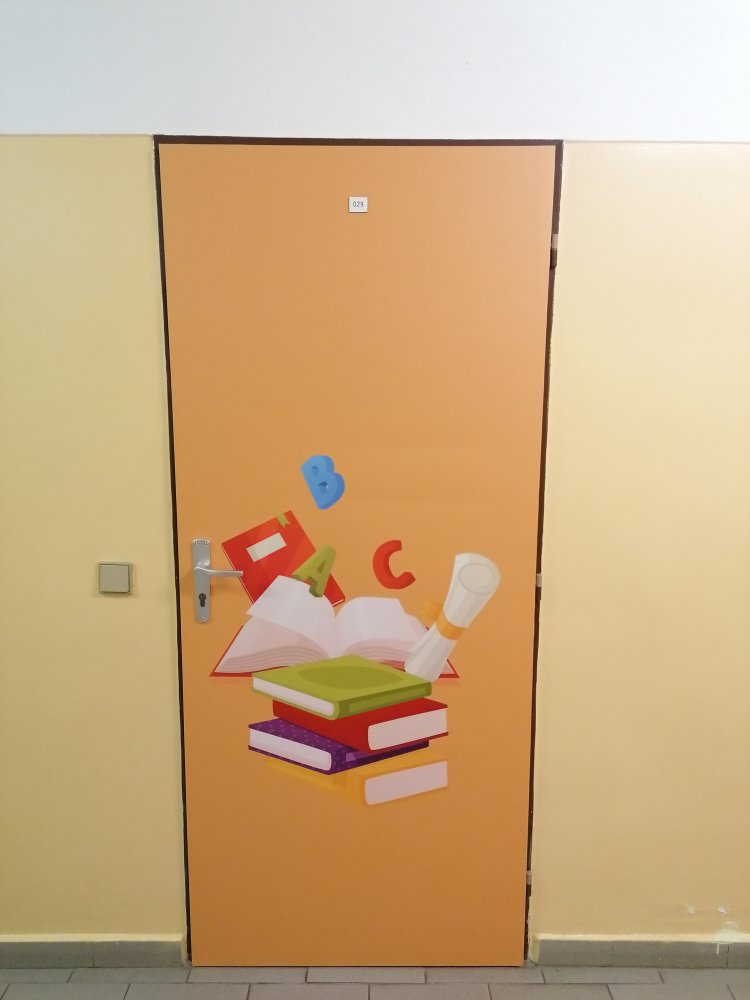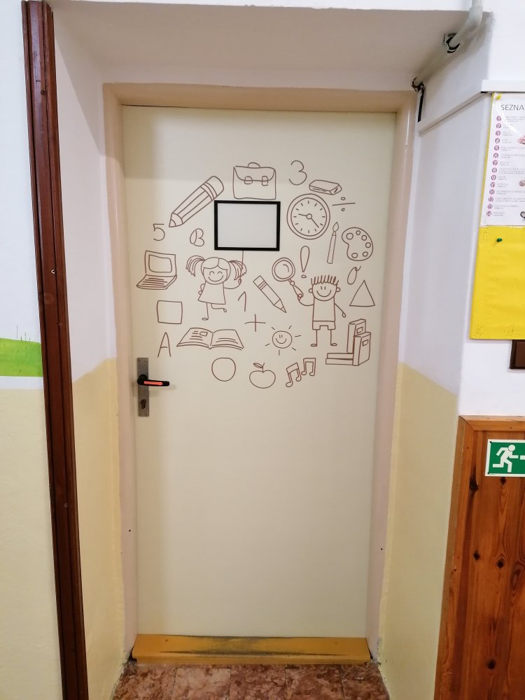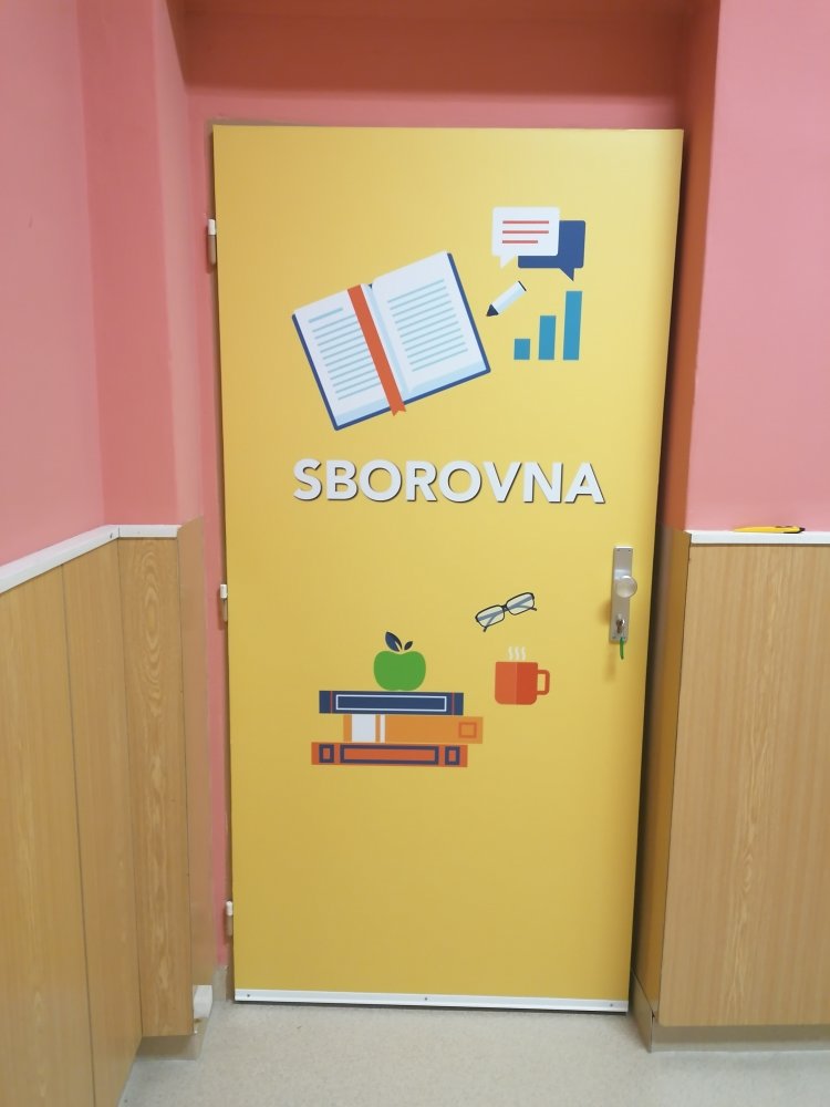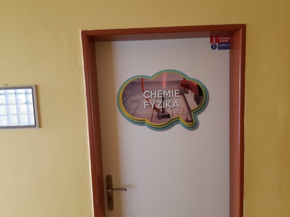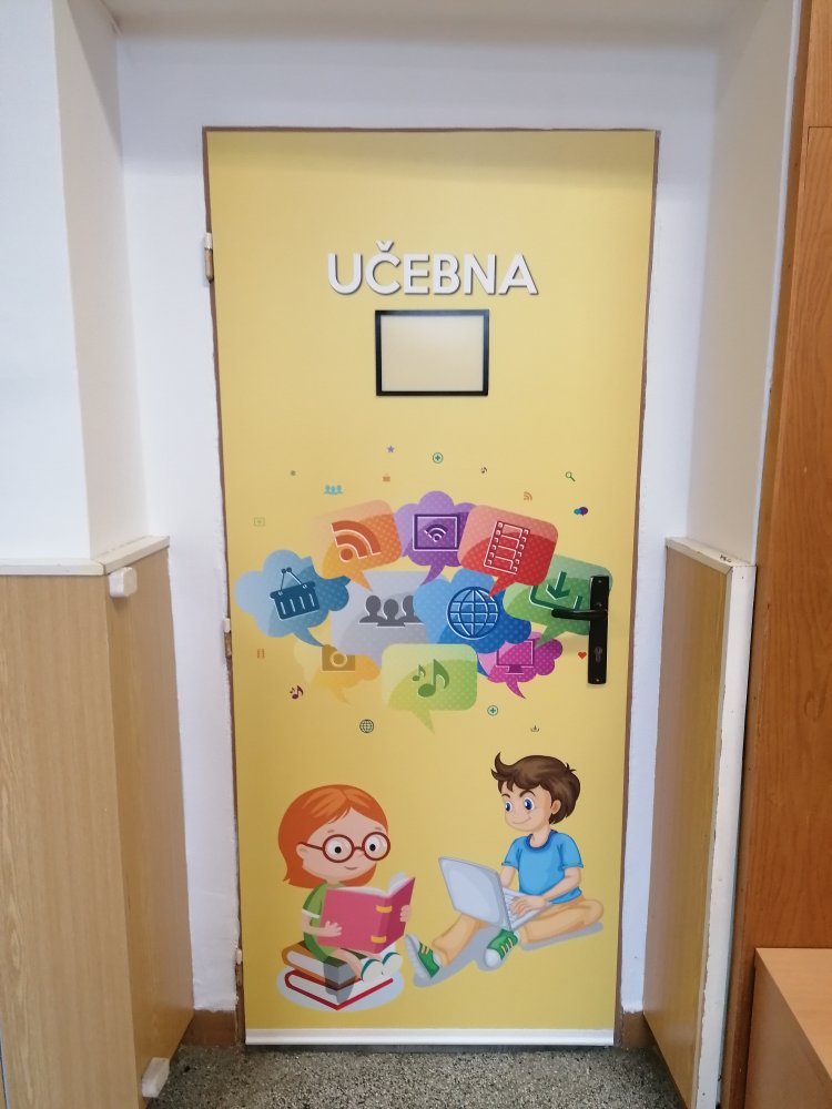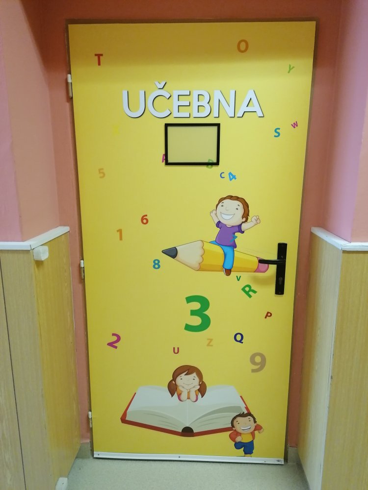 Vysoce kvalitní laminovaná folie, vhodná na polep dveří jednotlivých tříd, ředitelny apod. Grafika na míru, dle Vašeho zadání. U odborných učeben je možné přidat státem vyžadované bezpečnostní značky (např. hořlaviny, značku první pomoci, ohlašovna požáru atp).