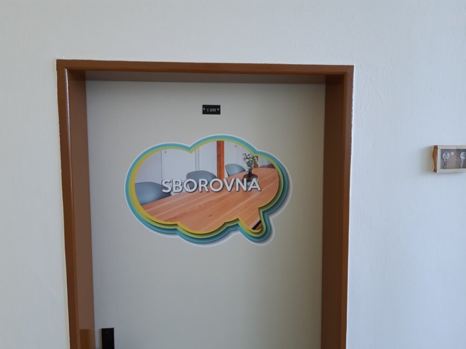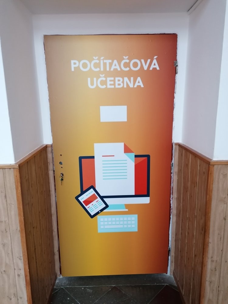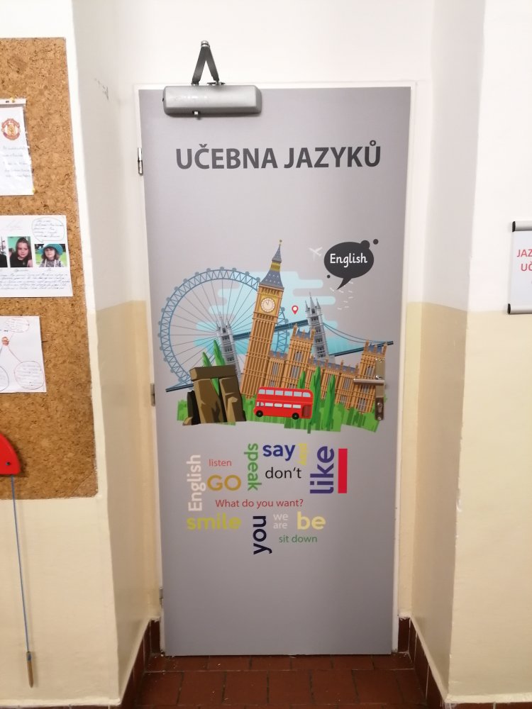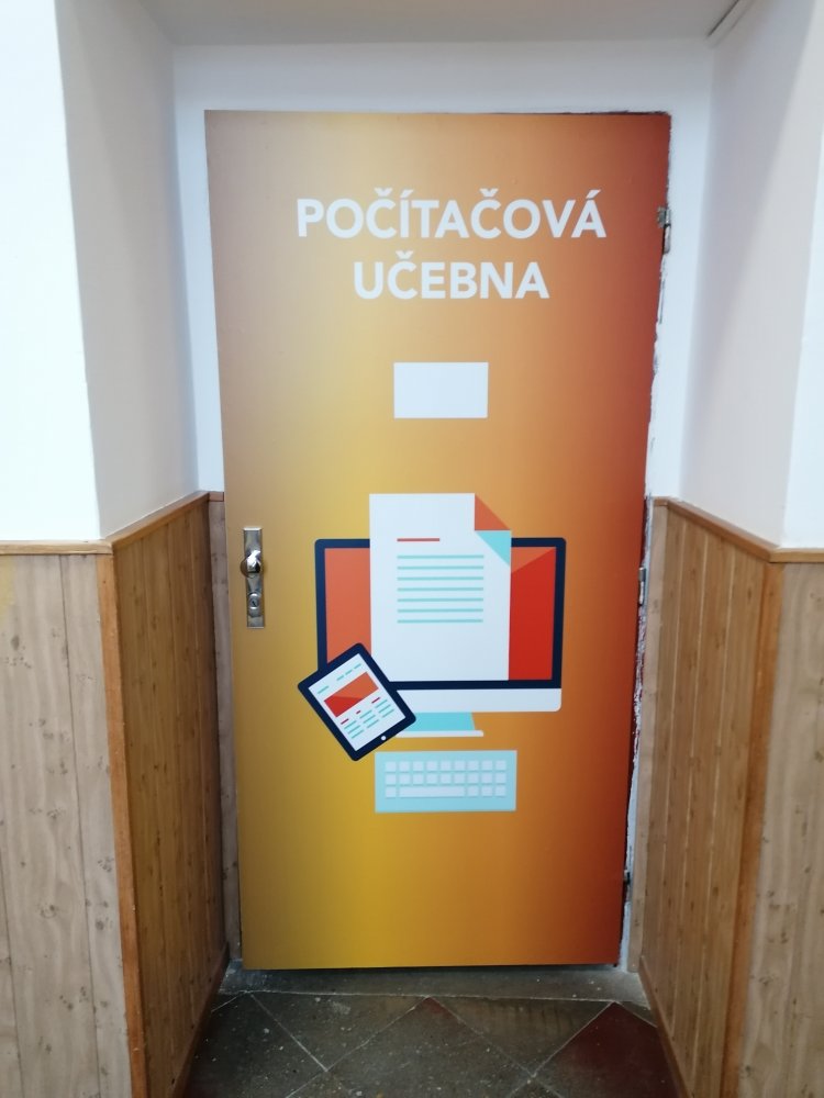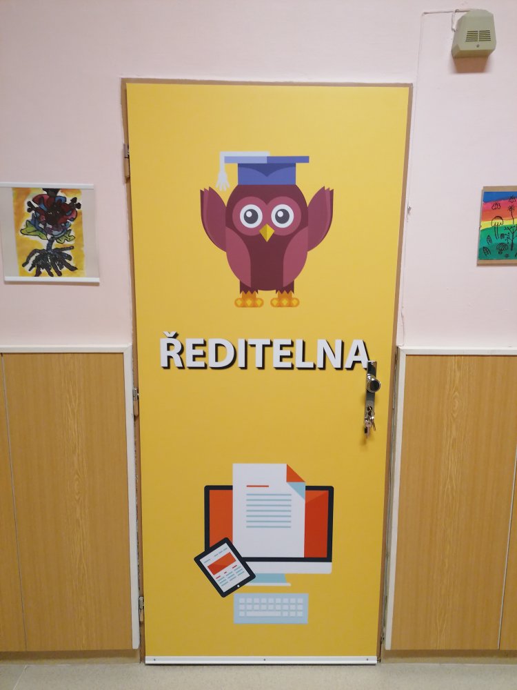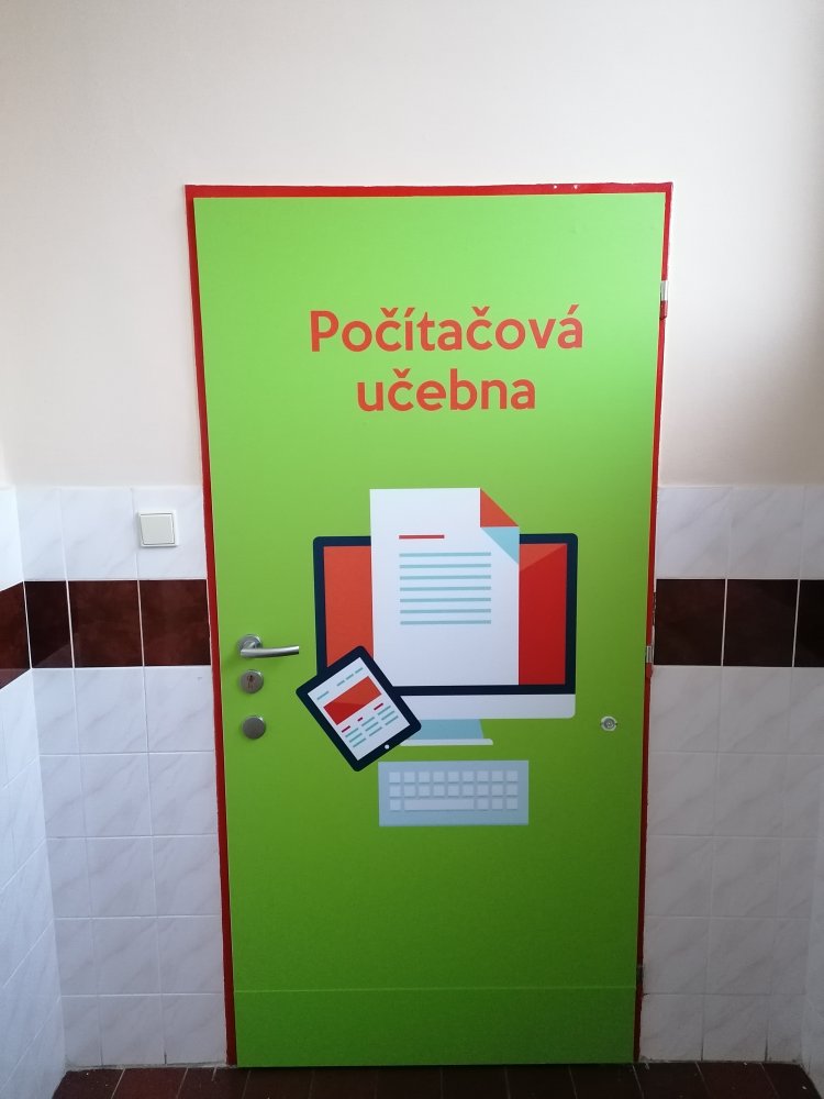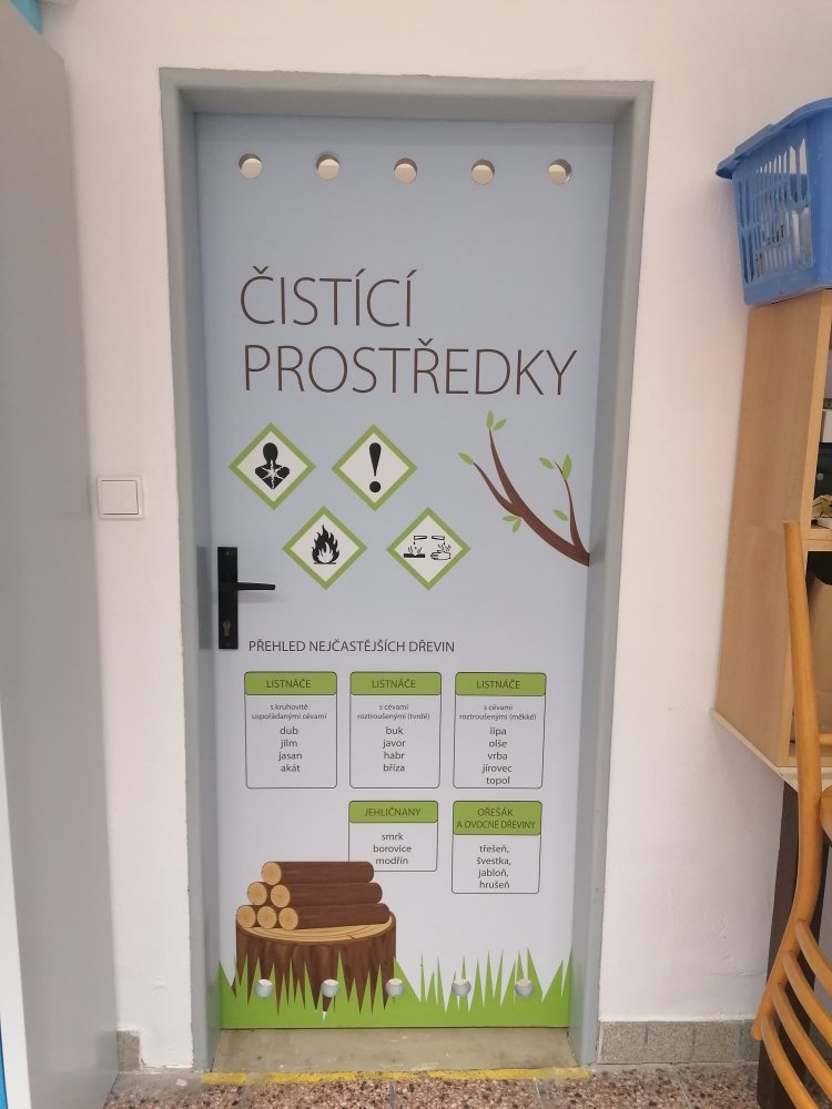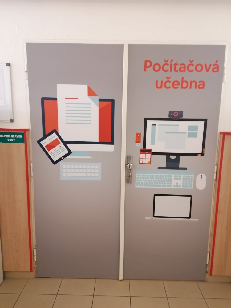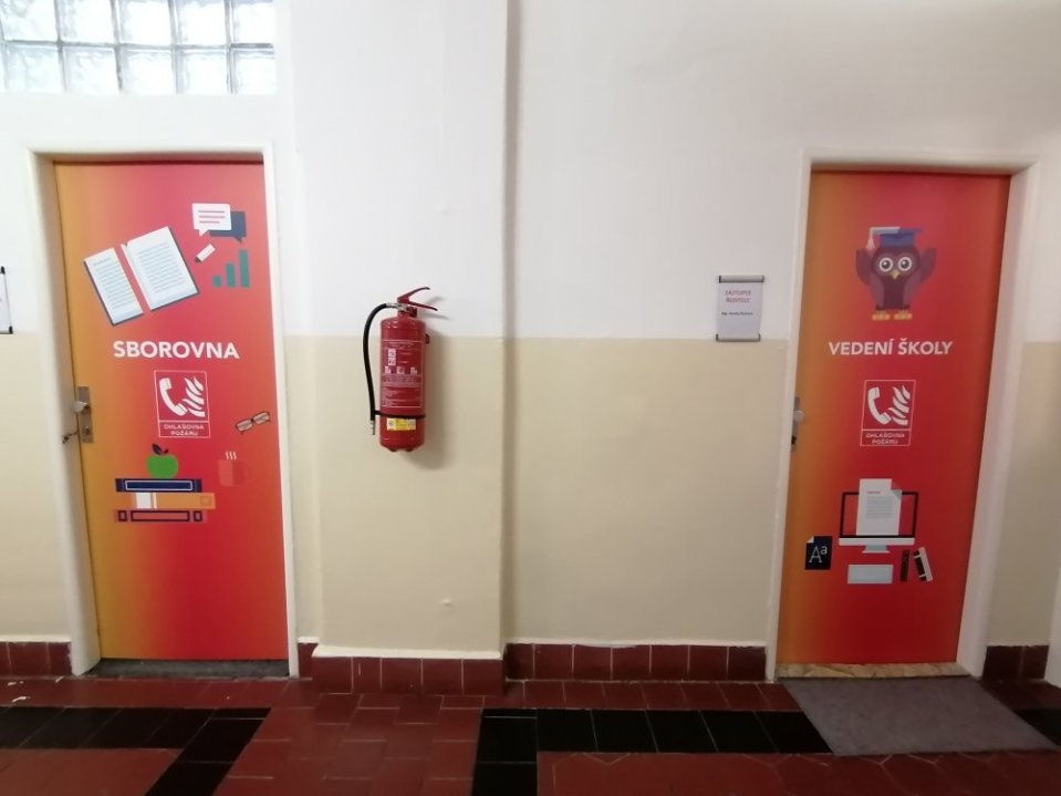 Vysoce kvalitní laminovaná folie, vhodná na polep dveří jednotlivých tříd, ředitelny apod. Grafika na míru, dle Vašeho zadání. U odborných učeben je možné přidat státem vyžadované bezpečnostní značky (např. hořlaviny, značku první pomoci, ohlašovna požáru atp).